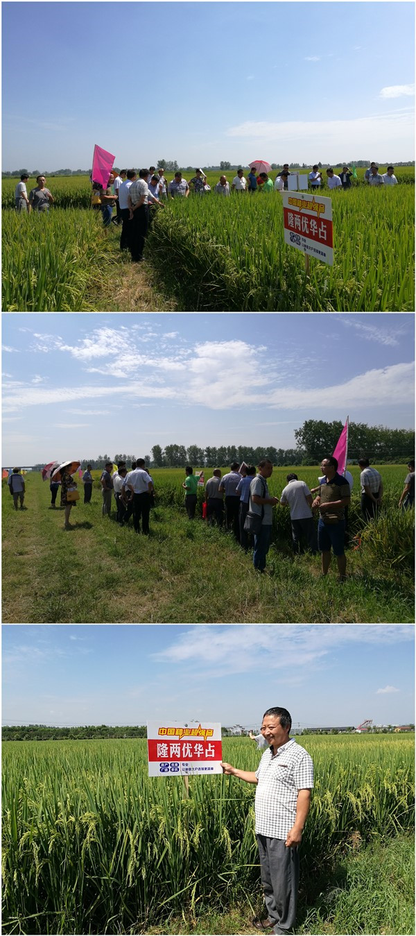 早上9點左右,滁州市區(qū)十個鄉(xiāng)鎮(zhèn)的零售商約30人,在滁州市代理商王守明王總的帶領下,一起去往農(nóng)場內(nèi)的隆兩優(yōu)華占示范田進行觀摩。大多零售商通過這幾年的種植銷售,對隆兩優(yōu)華占信心越來越足,尤其今年連續(xù)高溫下隆兩優(yōu)華占的結實率還這么高,大家對這個優(yōu)質品種十分看好!