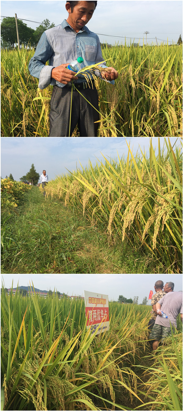為了更好地凸顯隆兩優(yōu)華占不同于其他一季晚稻的優(yōu)勢和特點(diǎn),我們選擇了三塊不同的田塊全面地展示品種表現(xiàn)。第一塊是有17個(gè)品種對比的田塊;第二塊是種植戶自己粗放種植田塊;第三塊是種植戶高產(chǎn)栽培田塊。通過對比直觀的展現(xiàn)出隆兩優(yōu)華占不同于其他系列的株葉形態(tài)、其他系列的結(jié)實(shí)率、其他系列的長穗、其他系列的分蘗力。