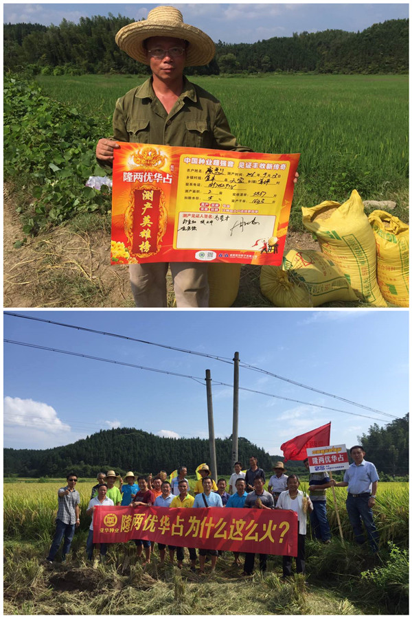 草坪村農(nóng)戶廖學義(18970529776)種植了11畝隆兩優(yōu)華占,已經(jīng)到了豐收的時候了,本次現(xiàn)場收割2畝的,收獲濕谷3867斤,合一畝1842斤,扣除15%水分,折合畝產(chǎn)干谷1643斤??粗淮忠淮墓茸友b好,農(nóng)戶臉上露出了滿意的笑容。廖學義在現(xiàn)場給大家講:“我昨天收了幾畝,濕谷最少都有1600斤,這個谷子很沉,比我去年種的品種增產(chǎn)不少”,現(xiàn)場看過的農(nóng)戶也都對隆兩優(yōu)華占贊不絕口,都表示明年一定首選隆兩優(yōu)華占,這么好的品種,不種那是一大損失啊。