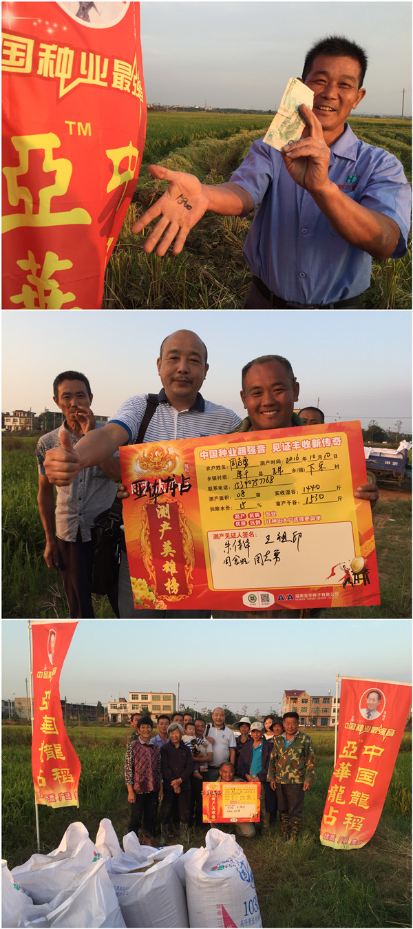 亞華龍占在余干自推廣以來,深受廣大農(nóng)戶的認可和喜愛。國慶過后,余干一季稻田塊陸續(xù)大面積收割,亞華龍占收割測產(chǎn)的號角也正式吹響!
