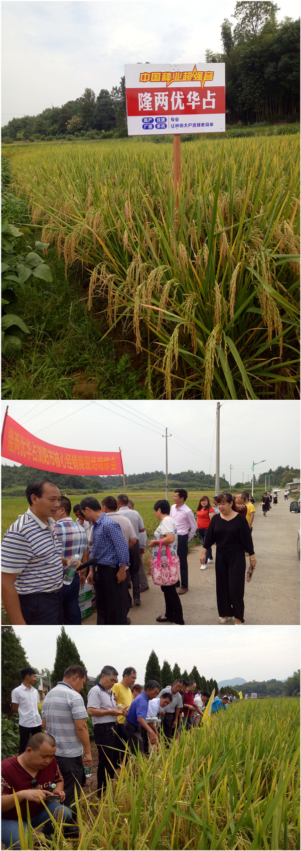 瀏陽市金牛種業(yè)公司組織來自全市近70位隆兩優(yōu)華占鄉(xiāng)鎮(zhèn)經(jīng)銷商,乘坐商務大巴來到焦溪鎮(zhèn)蔣勵村,現(xiàn)場觀摩由農(nóng)戶種植管理的隆兩優(yōu)華占大田表現(xiàn)。