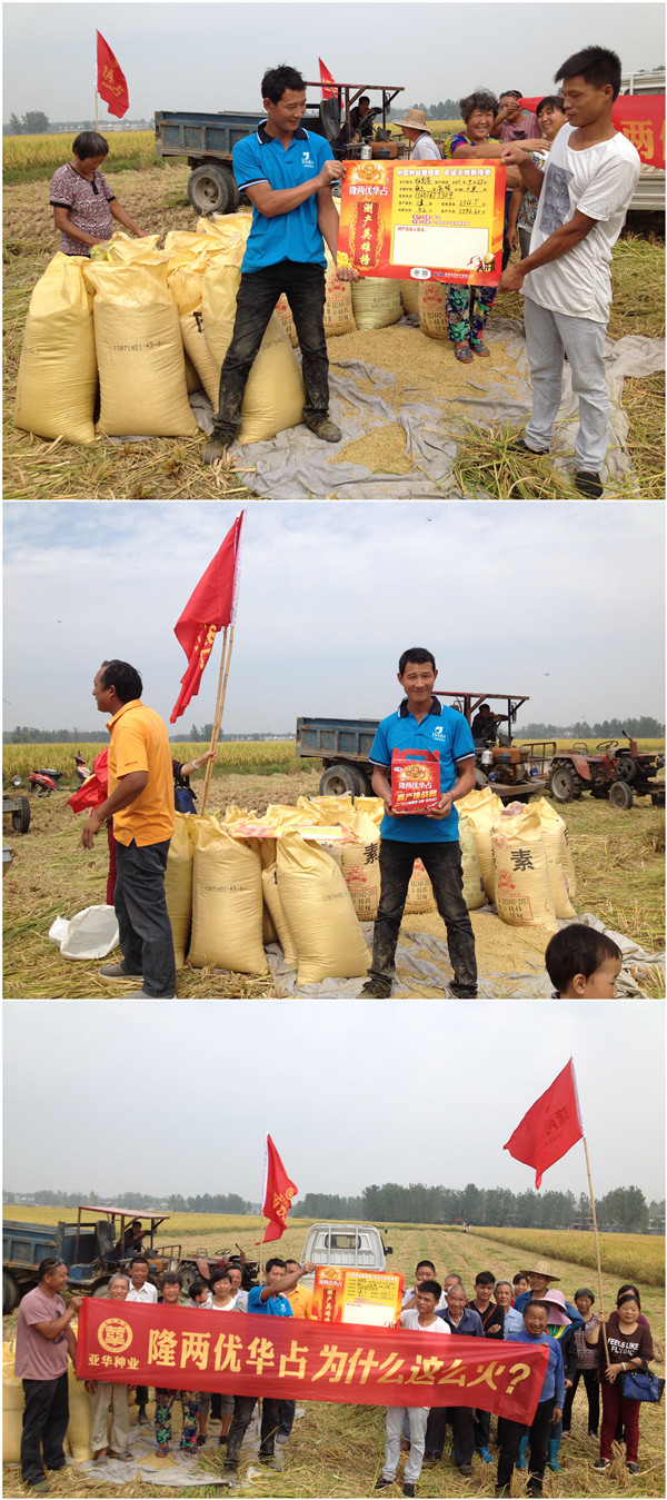 通過連續(xù)的田間實際測產(chǎn)之后,更加深了經(jīng)銷商田立山對隆兩優(yōu)華占品種的信心和大力推廣隆兩優(yōu)華占品種的決心。田總表示,南照鎮(zhèn)在潁上縣水稻種植上用肥用藥水平都比較低,水源一般,因此在潁上縣是產(chǎn)量比較低的區(qū)域,連續(xù)有這樣的測產(chǎn)結(jié)果,說明隆兩優(yōu)華占確實比較高產(chǎn)穩(wěn)產(chǎn),今年隆兩優(yōu)華占在潁上縣必然會大范圍喜獲豐收。我們有理由相信媲美八里河美景,隆兩優(yōu)華占這個名字必然像一顆璀璨的明珠閃耀在潁水大地,豐收在沿淮大地這片希望的田野上。
