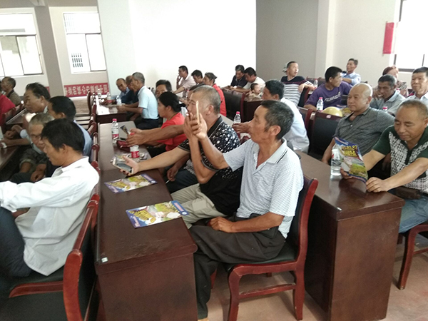 上午10點(diǎn)半,在射埠鎮(zhèn)農(nóng)技站工作人員和代理商鄧總的組織下,所有零售商和種植大戶參與室內(nèi)會議。會議中,農(nóng)業(yè)局工作人員就現(xiàn)代農(nóng)業(yè)、再生稻在未來幾年內(nèi)的定位進(jìn)行了講解,就再生稻的栽培技術(shù)進(jìn)行授課。整個會議過程,湘潭縣電視臺進(jìn)行了跟蹤報道。