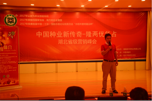 2017年8月19日在炎帝故里、世界編鐘之鄉(xiāng)—中國隨州,中國種業(yè)新傳奇—隆兩優(yōu)華占湖北省級(jí)營銷峰會(huì)隆重拉開序幕。參加此次峰會(huì)的有湖南亞華種業(yè)有限公司總經(jīng)理孫衛(wèi)華先生、湖南亞華種業(yè)有限公司湖北分公司總經(jīng)理姜文嘉先生、隨州新神農(nóng)種業(yè)有限公司總經(jīng)理萬天江先生以及湖北隆兩優(yōu)華占的代理商和零售商170多人。全國著名農(nóng)村電視欄目《荊州壟上行》、隨州電視臺(tái)《社會(huì)全方位》、《湖北日?qǐng)?bào)》及《農(nóng)村新報(bào)》全程跟蹤報(bào)道了此次會(huì)議。