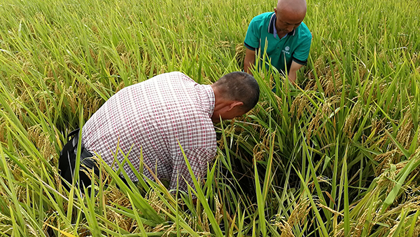 下雨也阻擋不住客戶的熱情,有不少的種植戶開始討論這塊田的產(chǎn)量“應(yīng)該在1600左右吧”、“這應(yīng)該不少于1700斤”,原計(jì)劃用收割機(jī)進(jìn)行收割,后改為現(xiàn)場(chǎng)隨機(jī)測(cè)產(chǎn),現(xiàn)場(chǎng)采用人工打谷的方式,扣除20%水份,折合標(biāo)準(zhǔn)畝干谷產(chǎn)量1810斤。