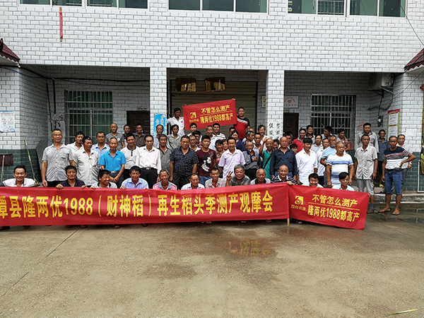 2017年8月14日在湘潭縣隆兩優(yōu)1988代理商的組織下,河口鎮(zhèn)卓江村迎來了70多位來自各鄉(xiāng)鎮(zhèn)的經(jīng)銷商商和種植大戶,一起觀摩隆兩優(yōu)1988示范田并且進(jìn)行現(xiàn)場(chǎng)測(cè)產(chǎn)。