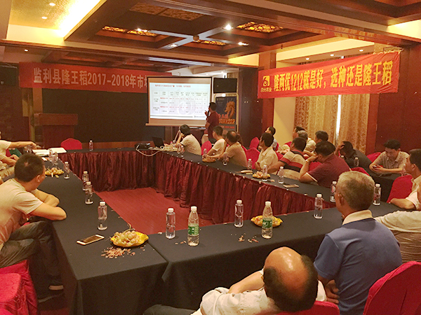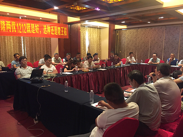會(huì)上,唐經(jīng)理深入淺出的介紹了公司情況、“隆兩優(yōu)1212”的品種特征以及高產(chǎn)栽培技術(shù)。隨后,魏總重點(diǎn)闡述了大公司大品牌的運(yùn)作思路、同類(lèi)產(chǎn)品在高溫極端天氣下各區(qū)域的表現(xiàn)以及集團(tuán)公司對(duì)市場(chǎng)管控的嚴(yán)格操作。