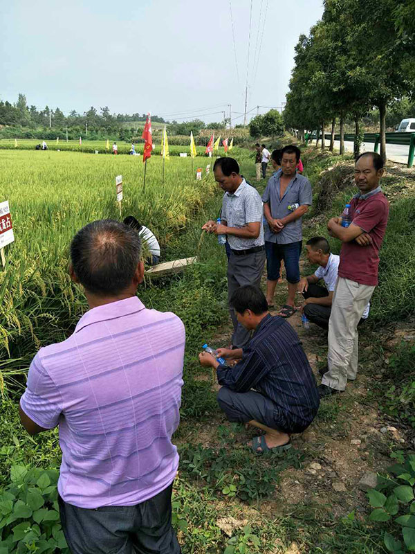 8月21日早上7點(diǎn),30多名經(jīng)銷商和種植大戶準(zhǔn)時(shí)到達(dá)宜城,由代理商鄭平帶往70公里外的棗陽(yáng)吳店鎮(zhèn)沈范村參觀晶兩優(yōu)龍占的示范田。一路上,各位合作伙伴和種植大戶都非常期待。