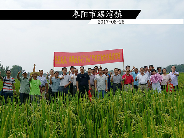 2017年8月26日湖北省棗陽市召開隆兩優(yōu)華占的市場(chǎng)啟動(dòng)會(huì),早上10點(diǎn)由農(nóng)富樂農(nóng)業(yè)有限公司周愛國(guó)總經(jīng)理帶領(lǐng)棗陽市各個(gè)鄉(xiāng)鎮(zhèn)30余位零售商來到踞灣鎮(zhèn)隆兩優(yōu)華占的模范田塊進(jìn)行觀摩。