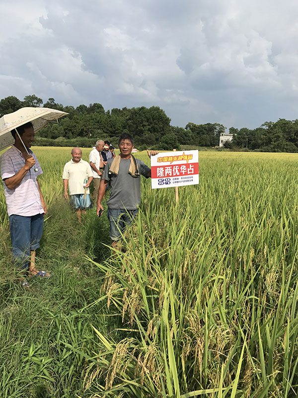 2017年8月23日,東安各鄉(xiāng)鎮(zhèn)零售商及種植大戶集聚東安井頭圩鎮(zhèn),觀摩張老板種植的500畝連片隆兩優(yōu)華占。