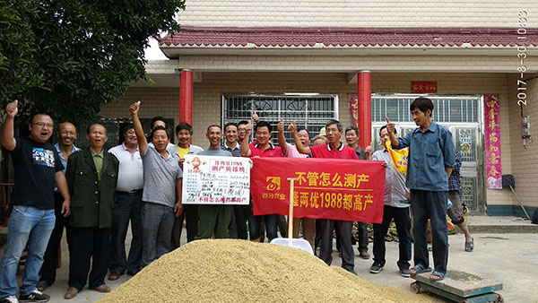 2017年8月30日上午,在應(yīng)鼎城石公橋經(jīng)銷(xiāo)商陳月清的組織下召開(kāi)隆兩優(yōu)1988的測(cè)產(chǎn)會(huì),參會(huì)人員有常德鼎城代理商陳總、袁總、百分農(nóng)業(yè)湖南大區(qū)劉浩經(jīng)理、鼎城區(qū)高級(jí)農(nóng)藝師周老師和陳老師及28位零售商、種植大戶和農(nóng)戶。