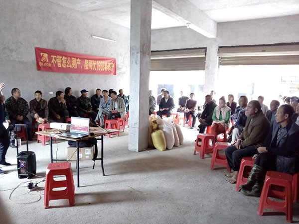 在室內(nèi)交流會上,百分農(nóng)業(yè)李經(jīng)理向大家介紹了品種在抗性和產(chǎn)量上的優(yōu)勢,還特別介紹了廣水周邊縣市隆兩優(yōu)1988的優(yōu)秀表現(xiàn),各種跡象表明,隆兩優(yōu)1988就是一個能放心賣、放心種的好品種。陳總宣布訂購政策后,零售商楊老板介紹到“通過對比其他品種和隆兩優(yōu)1988的差距就可以看出,隆兩優(yōu)1988增產(chǎn)很大,是一個高產(chǎn)好品種”。