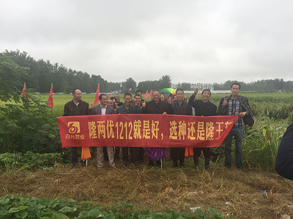 近日來,固始縣一直都是陰雨天氣,會議當天也一直下著雨,但并沒有澆滅農戶們對隆兩優(yōu)1212的熱情,依然有很多農戶參加了會議。上午10點多,在陳老板夫婦的帶領下,大家冒著雨觀摩了隆兩優(yōu)1212的田塊,同時也和周邊的田塊從結實率、抗倒性等多方面進行了對比,都有比較明顯的優(yōu)勢,各位農戶對隆兩優(yōu)1212也是贊不絕口,直夸品種好。