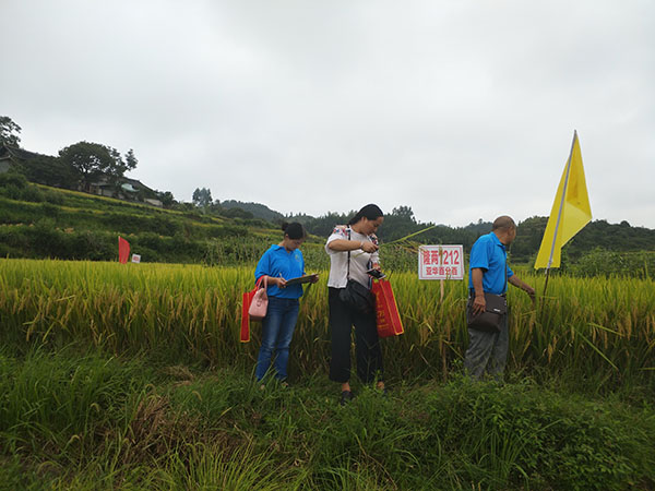 上午九時許,各人員乘車來到坪村鎮(zhèn)巖壁村觀摩隆王稻——隆兩優(yōu)1212。首先由零售商自行觀摩隆兩優(yōu)1212的田間表現(xiàn),再由示范田種植戶龍安福講解種植的田間管理,最后由公司代表羅琳輝經(jīng)理簡單介紹品種的一些株葉形態(tài)等生理特征特性,各零售商都紛紛做好記錄,同時詢問隆兩優(yōu)1212的抗病性、抗倒性、米質(zhì)和產(chǎn)量等方面的表現(xiàn),之后由粟永榮粟總宣布訂購優(yōu)惠政策,各零售商都積極訂購,最終統(tǒng)計訂購量達(dá)1200公斤。還有幾個零售商表示明年可以在他們當(dāng)?shù)刈鍪痉短?,管理水平會更好?/span>