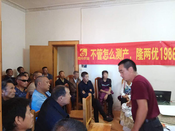 組織好種植戶回到會(huì)議室內(nèi),會(huì)議首先由百分農(nóng)業(yè)袁經(jīng)理總結(jié)隆兩優(yōu)1988的高產(chǎn)、抗病、抗倒性及米質(zhì)優(yōu)的幾大優(yōu)勢(shì)表現(xiàn),下面種植戶紛紛表示隆兩優(yōu)1988在今年能有如此表現(xiàn),已經(jīng)是非常滿意了。最后,由財(cái)神稻代理商朱錦華進(jìn)行講解預(yù)訂種子送獎(jiǎng)品政策,不到30分鐘,現(xiàn)場(chǎng)就完成預(yù)訂680斤,現(xiàn)場(chǎng)非?;鸨?!