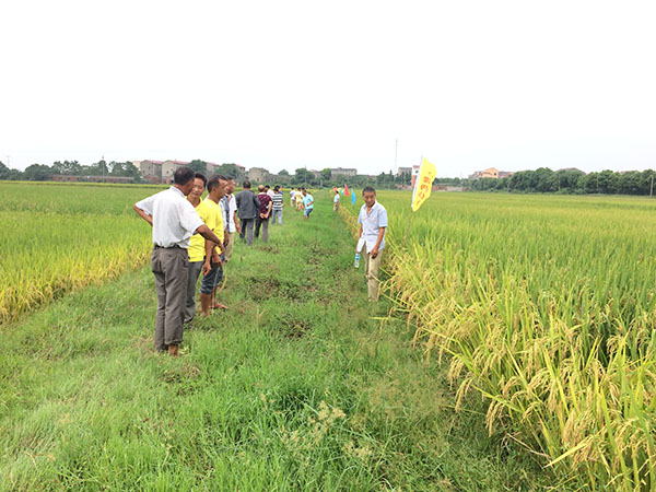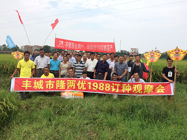 2017年9月10日,由亞華集團百分農(nóng)業(yè)財神稻豐城市代理商詹總、熊總組織各鄉(xiāng)鎮(zhèn)零售商及大戶代表60余人,來到豐城市尚莊鎮(zhèn)一同觀摩檢閱財神稻,共同見證了財神稻—隆兩優(yōu)1988的完美表現(xiàn)。