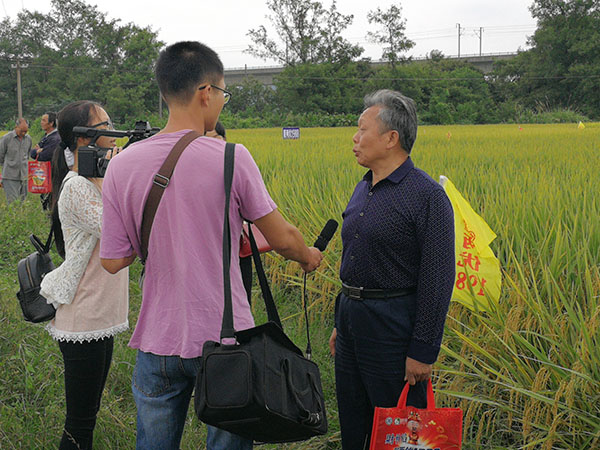 代理商郭總陪同農業(yè)局領導和專家在財神稻的田塊看了一遍,對財神稻的表現(xiàn)十分認可,同時電視臺記者對當?shù)氐姆N植大戶進行了采訪,看見一片片金黃黃的稻谷,種植戶的臉上洋溢著笑容和自豪。