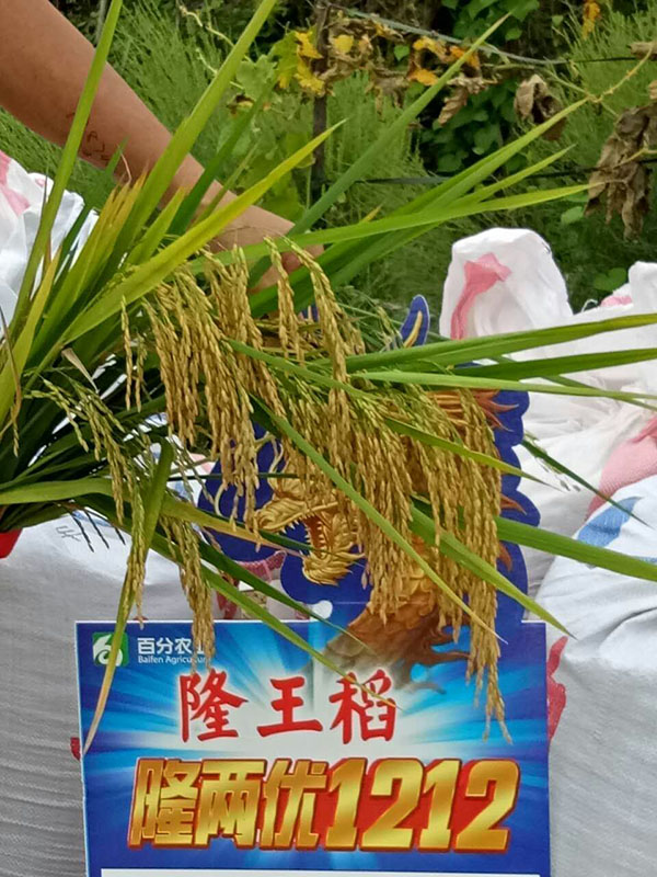 隆王稻——隆兩優(yōu)1212隨著徐徐秋風(fēng)搖曳著身姿,迎接著一年一度的秋收。9月13日上午農(nóng)戶賀祖發(fā)已備好收割機(jī),萬事俱備,只等著懷化市種子經(jīng)銷商王梅香及附近的種植大戶來見證“隆王稻”的收割現(xiàn)場。