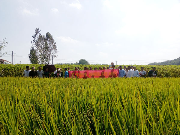 看著沉甸甸的稻穗整齊地勾下了頭,沒有任何病蟲害,大家贊不絕口。而相鄰種植的某一品種的對比田塊中,在同樣的水肥田間管理情況下,不僅出現(xiàn)了倒伏現(xiàn)象,有效穗和結實率也有差距。高興之余,每一位嘉賓給予高度認可和好評,并紛紛合影留念。